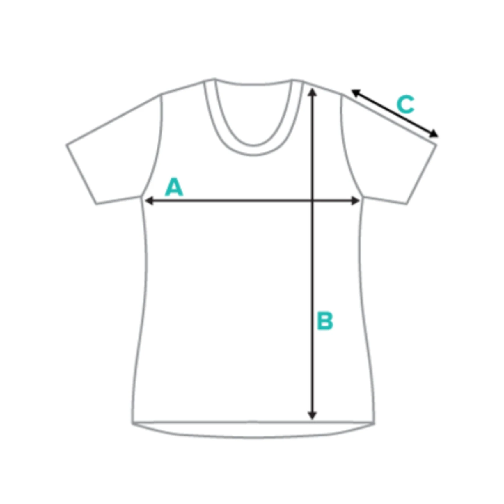 | Size (inches) | A (1/2 Chest Width) | B (Length) | C (Sleeve Length) |